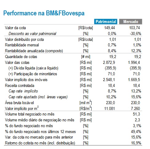Ou seja, o valor do fundo está bem valorizado. Não faz muito tempo que o valor de mercado estava bem próximo do valor patrimonial.