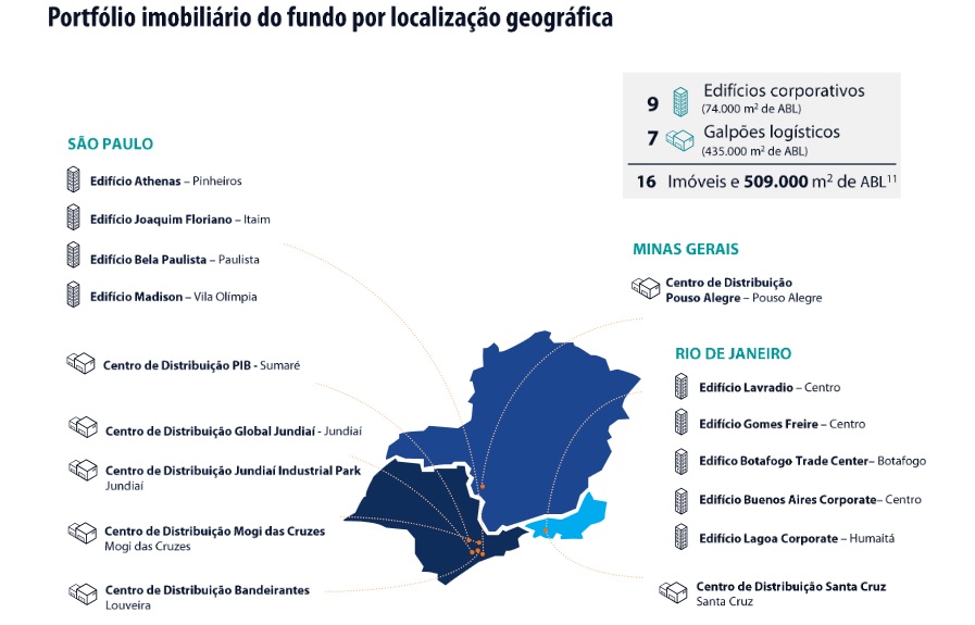 Desde galpões, até lajes corporativas. Todos esses bens também estão espelhados pelo Brasil, se concentrando mais entre o Rio de Janeiro e São Paulo.