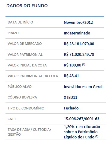 O fundo teve sua inauguração na bolsa de valores, por volta do final de 2012. Sendo que no primeiro semestre de 2013 ficou acertada a devolução de parcela do patrimônio de XTED11.