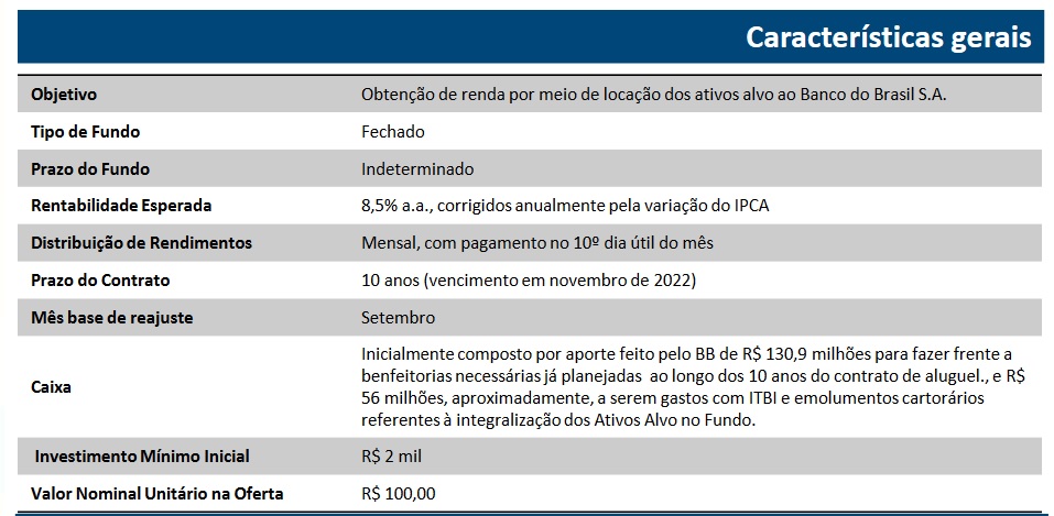 É importante lembrar que BBPO11 veio ao mercado em meados de 2012, tendo um contrato firmado com o Banco do Brasil, para alugar as agências por dez anos, sendo possível a renovação.