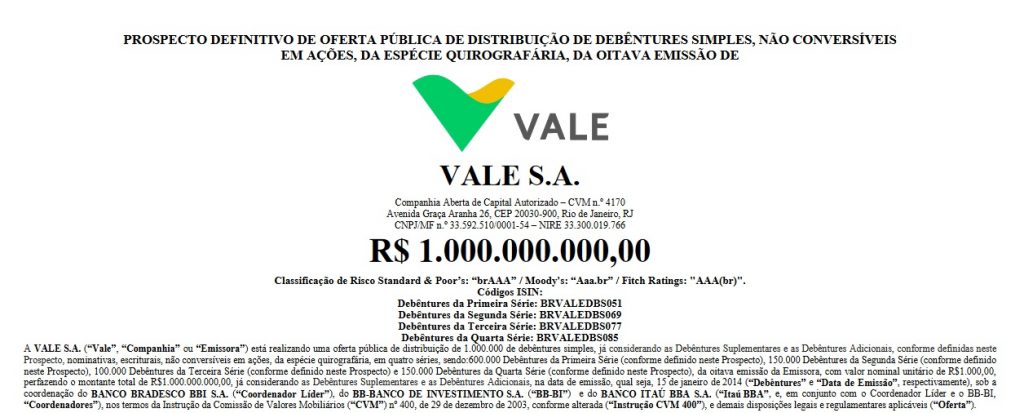 Quando falo nacional quero me referir que os padrões internacionais são diferentes. Dificilmente um ativo nacional pode se superior ao rating de crédito do governo federal por exemplo. Observando isso, acredito que alguns leitores podem se confundir com o rating internacional e nacional (é bem provável que internacionalmente o rating dessa debênture seja algo próximo da nota dos títulos do Tesouro ou inferior, a nota seria algo próxima do BBB).