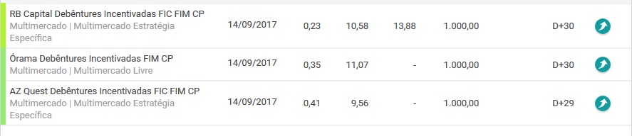 Assim, você consegue alguma pista sobre a facilidade de negociar o ativo. Excluindo essas formas de negociar as debêntures, podemos encontrar fundos que investem nas mesmas!